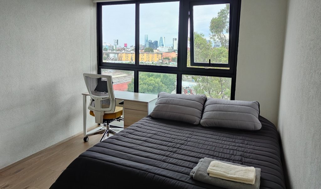Se renta cuarto amueblado, con baño privado, listo para ocupar, en departamento muy luminoso y con excelente ubicacion.