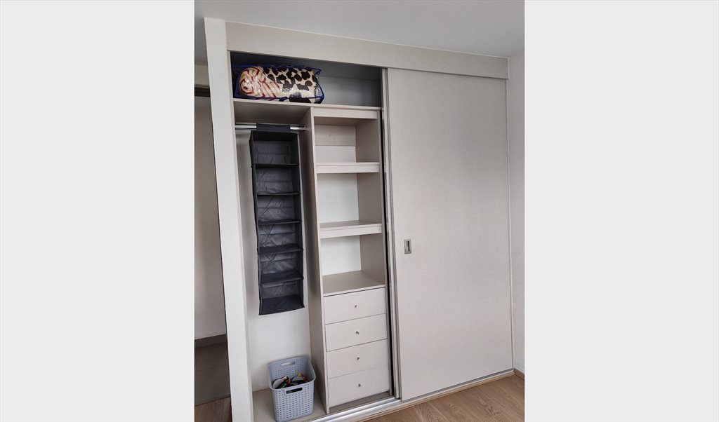 El cuarto se encuentra en un 4to piso, tiene unos 30 m2, y cuenta con: cama queen size, escritorio, silla, amplio guardarropas, vidrio doble anti ruido, y cortinas blackout.