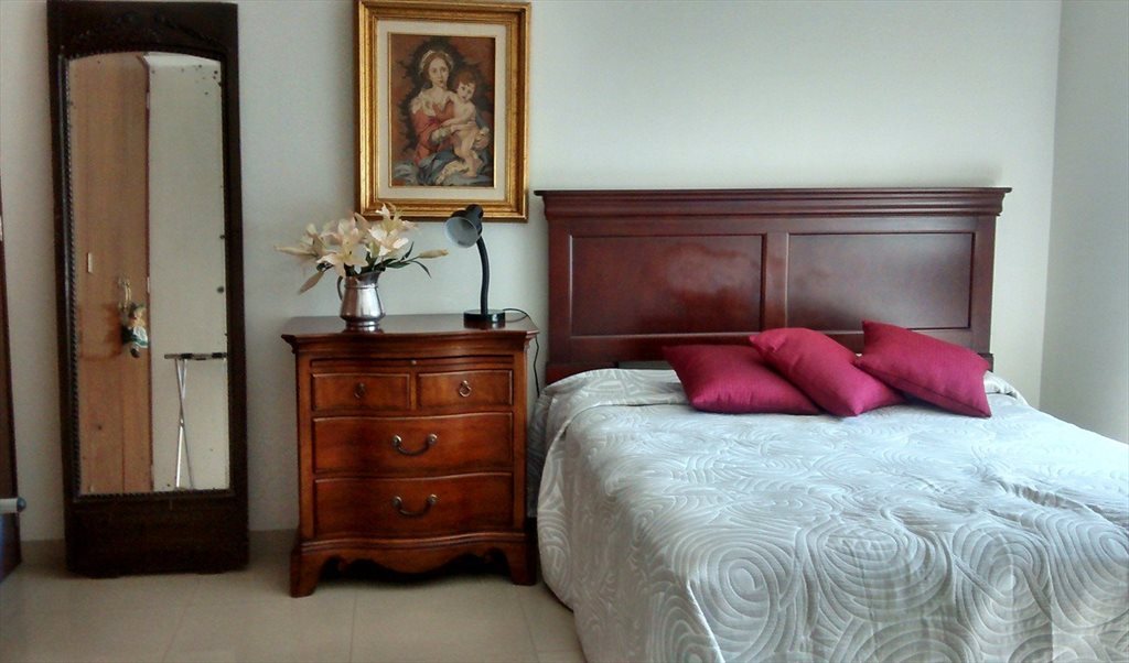 Rento amplia recámara en casa particular, con vista al jardín, cuenta con cama queen size, escritorio, silla y closet amplio, se permite el acceso al area de lavanderia, y cocina, donde cada quien tiene un espacio personal para guardar y un refrigerador que se comparte.