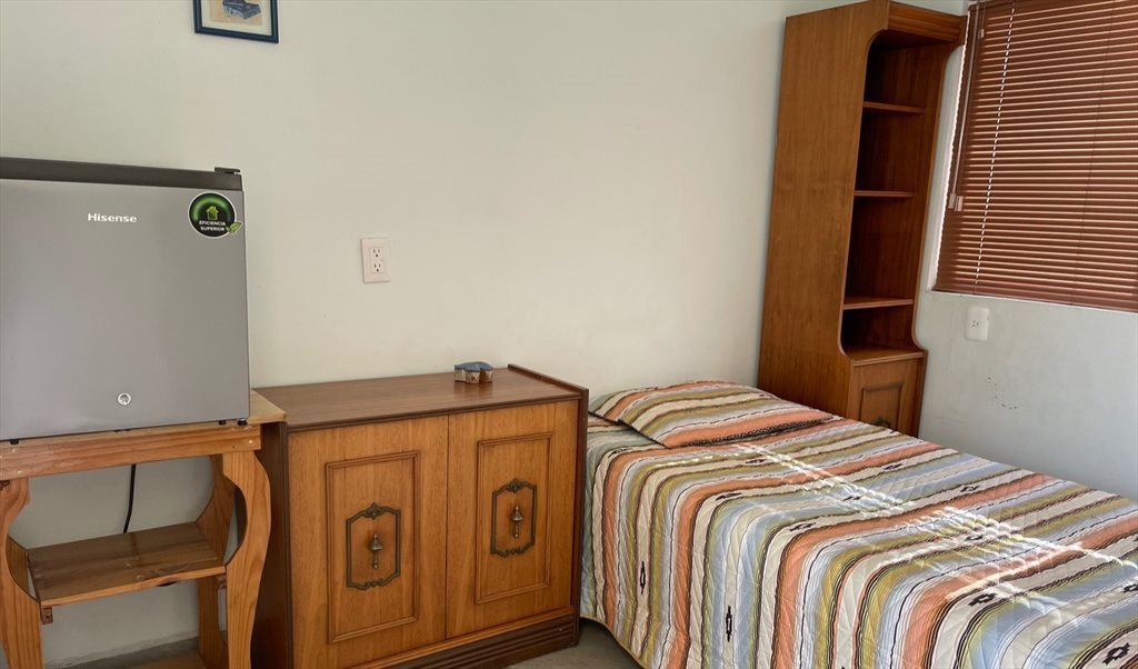 Habitación independiente con baño privado y frigobar. Por Plaza Satélite, incluye agua, gas, luz e internet.