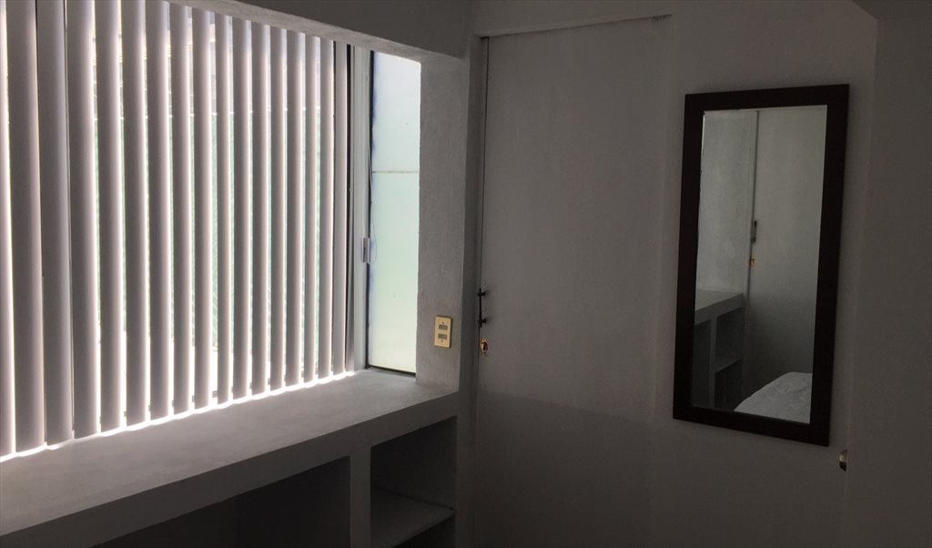 Se renta una habitación con cama individual, closet grande y baño privado.