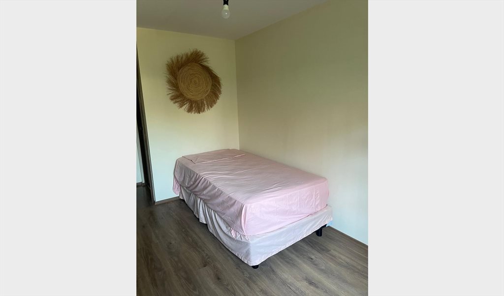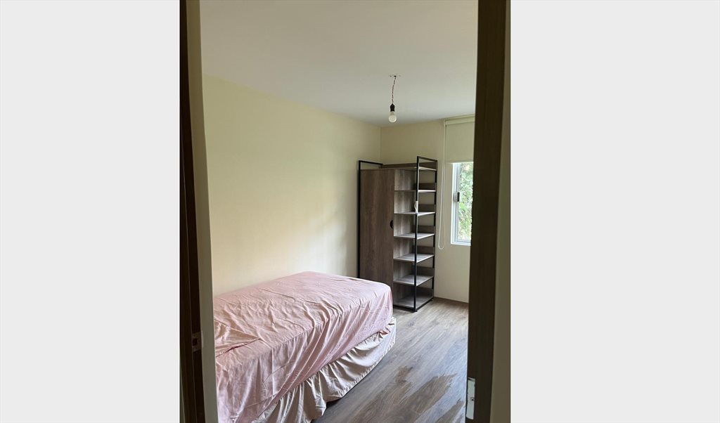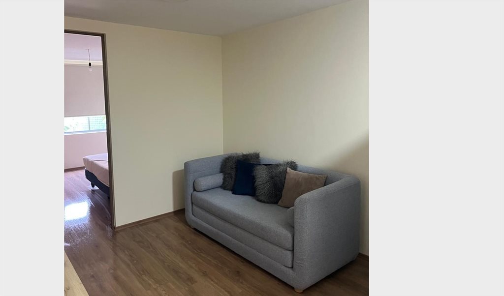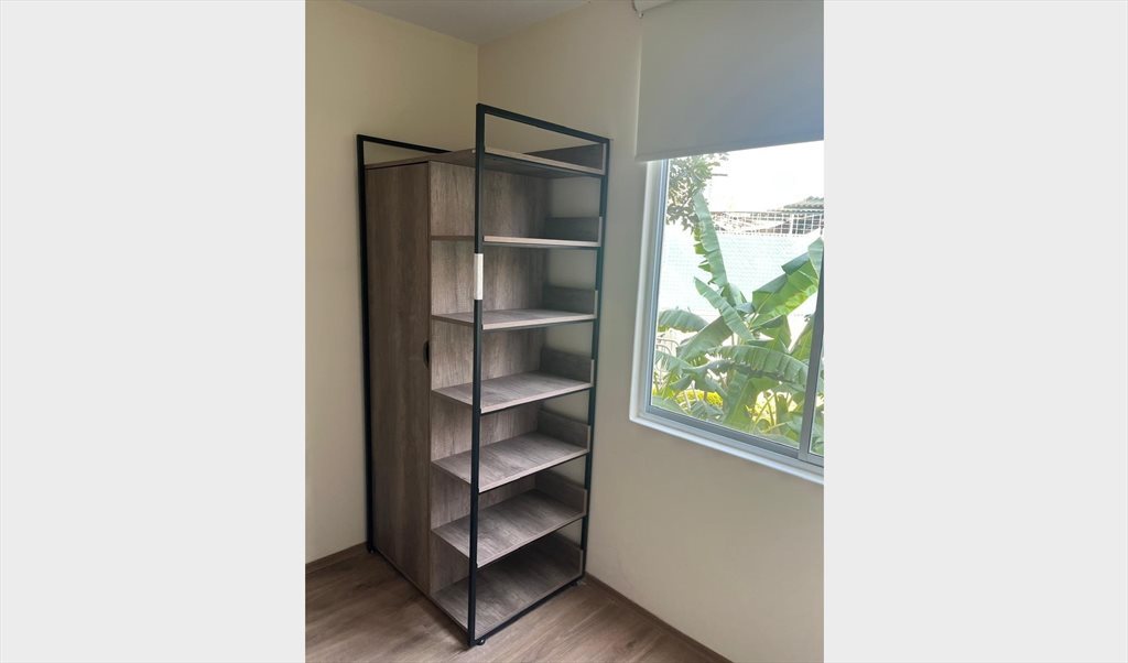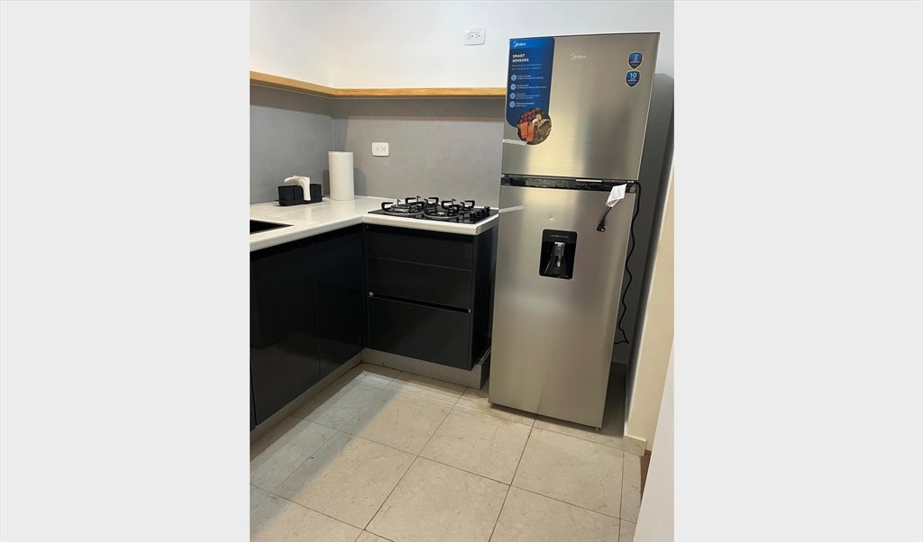 Individual y otra matrimonial, el departamento está semi amueblado listo para mudarse, cada recámara tiene su clóset y cama, la cocina tiene refrigerador, estufa. La sala tiene un mueble para TV y sofá cama y hay un comedor con sillas para tres personas.