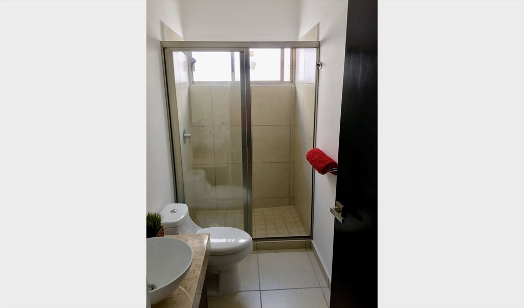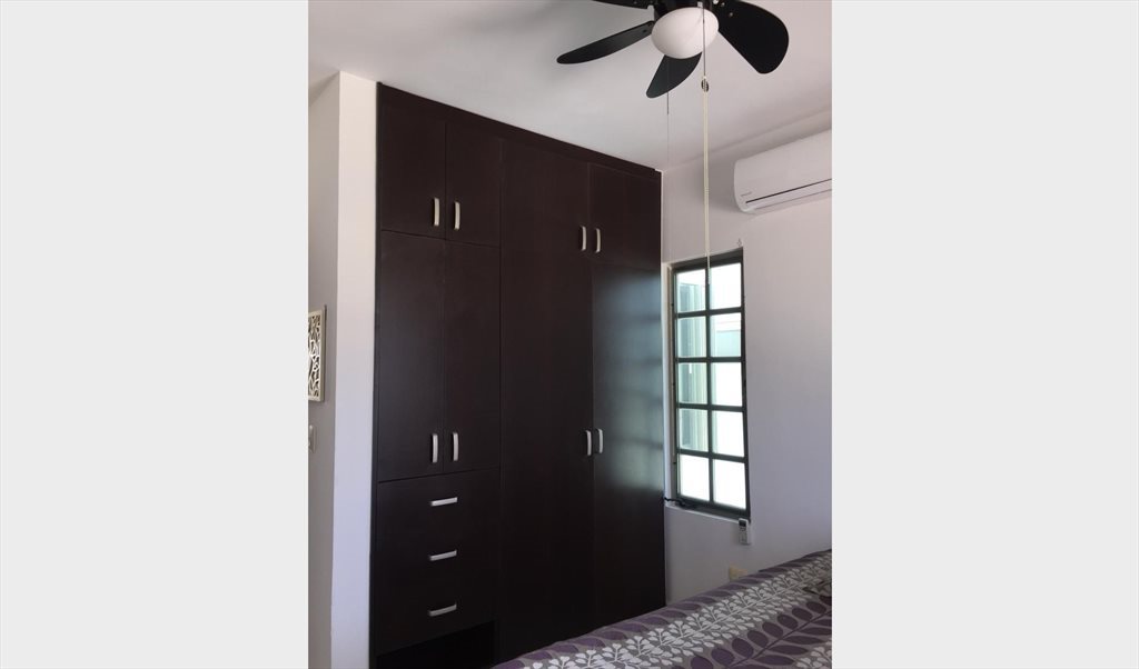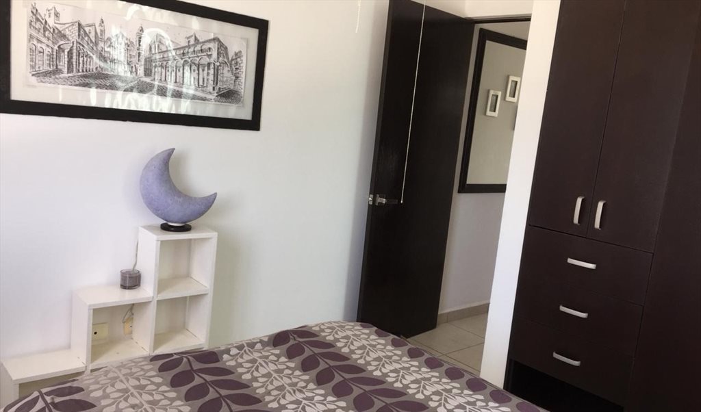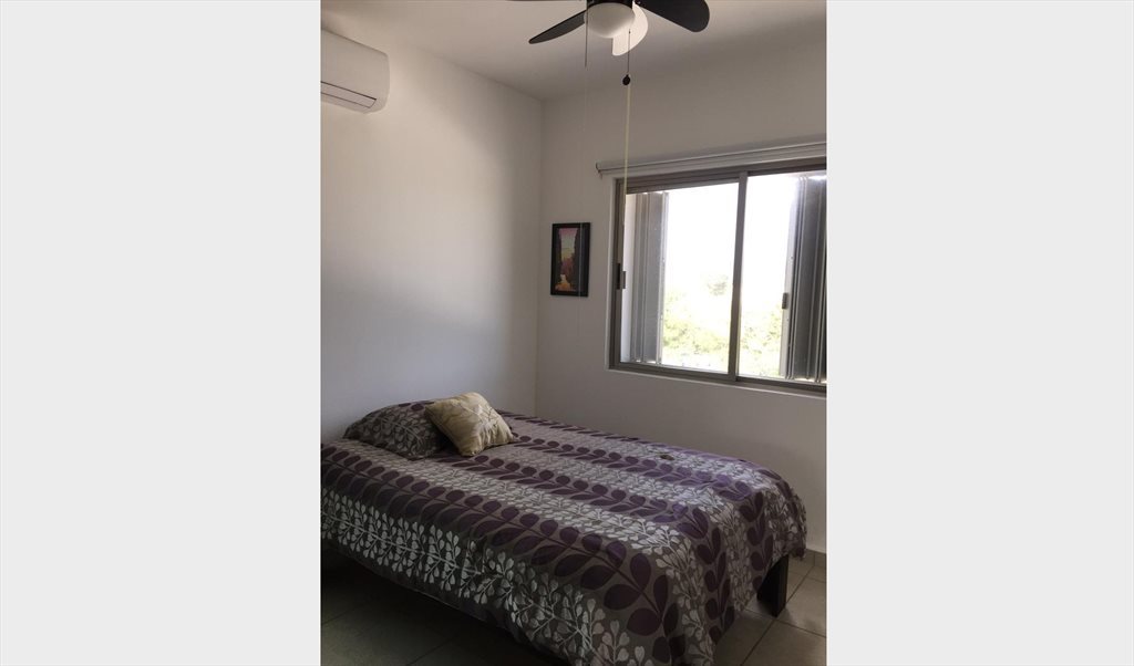 Rento habitación con cama matrimonial, enorme closet, aire acondicionado y ventilador, muy iluminado. Baño privado. Apartamento totalmente amueblado, lavadora y secadora disponibles, área social y piscina. Incluye agua, mantenimiento, internet, y compartimos pago de luz y gas dependiendo de tu consumo. Pido depósito de cinco mil