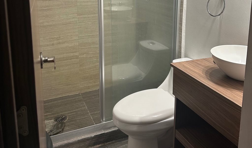 El departamento es amplio, dos lugares de estacionamiento (uno sería tuyo), 2 baños y medio, cada quien tiene su baño propio y medio baño de visitas en la sala, tiene un clóset bastante amplio tipo walk-in, y un balcón en tu cuarto, las ventanas cuentan con una película térmica que impide que vean desde afuera y reduce el efecto térmico tanto de frío como de calor en la habitación. El cuarto es mediano y cuenta con unas repisas ya instaladas, también contamos con un roof privado de 55 m2 aprox, sala y comedor, cocina equipada, lavadora, el depa ya está amueblado excepto el cuarto. El edificio tiene un pequeño gimnasio y un roof garden común por si se quiere hacer alguna reunión de más gente. La renta sería de 10,500 (mtto incluido) + servicios (agua, luz, internet y gas) contamos con seguridad 24 horas en el edificio.
