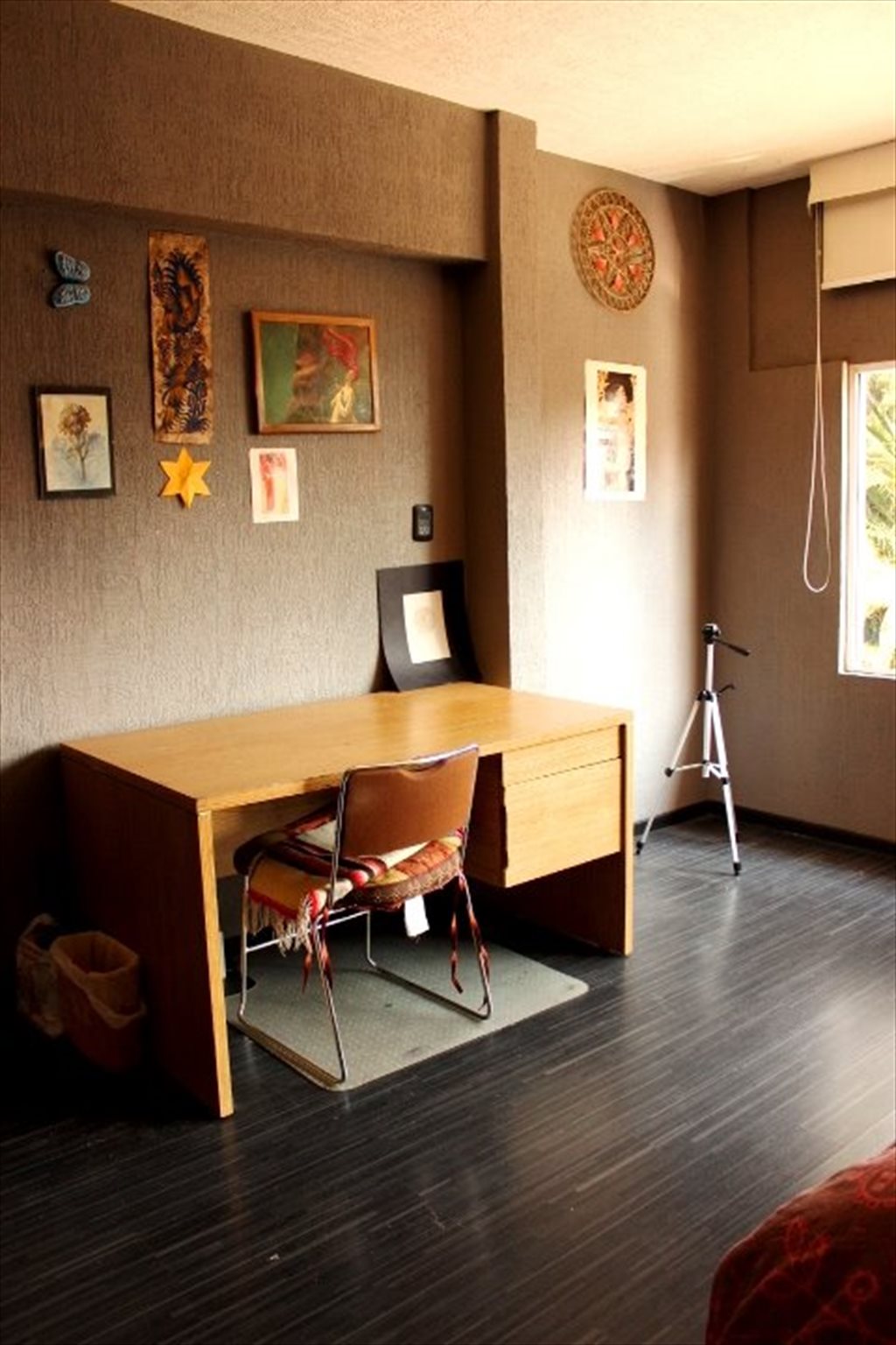 BONITA Y MUY AMPLIA RECÁMARA, AMUEBLADA AL 100% CON MUEBLES DE ALTA CALIDAD (CAMA MATRIMONIAL CON CABECERA CON AMPLIO LIBRERO, DOBLE BOUREAU GRANDES, ESCRITORIO, SILLA Y TAMBIÉN CUENTA CON AMPLIO CLOSET DOBLE.
