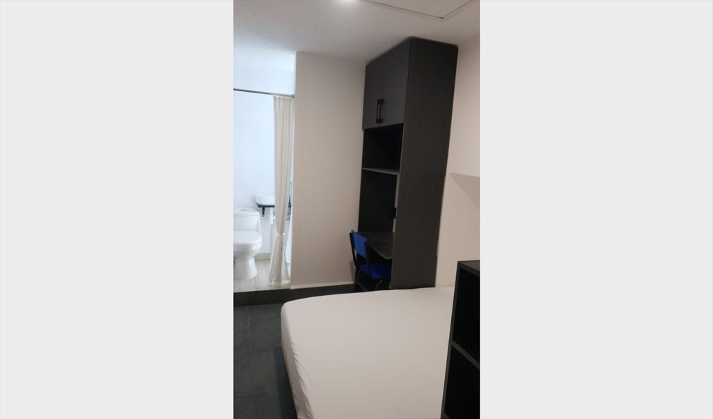 Hola, tenemos una habitación disponible con cama matrimonial y escritorio. Ideal para estudiantes o jovenes profesionales. El cuarto cuenta con baño privado. El inmueble cuenta con todas las amenidades básicas. El lugar es muy tranquilo y se encuentra a unas cuadras del metro ermita. Saludos y suerte en tu búsqueda :)