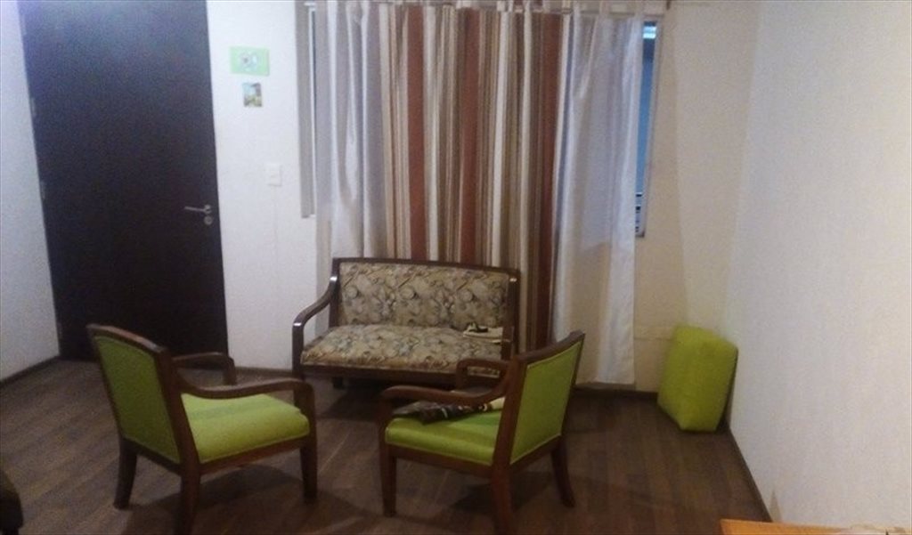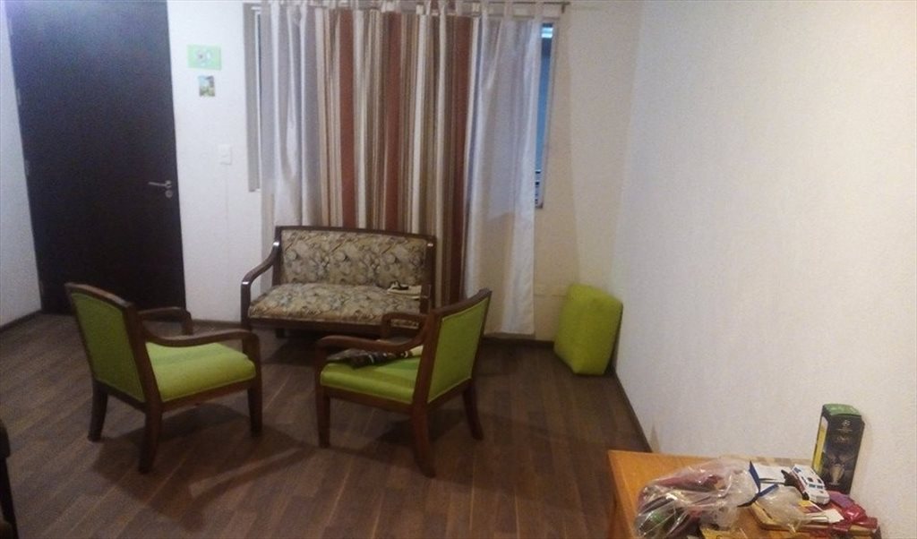 La habitación tiene baño propio y balcón. Únicamente habría dos personas ocupando el departamento, el cual cuenta con: sala, cocina, comedor.