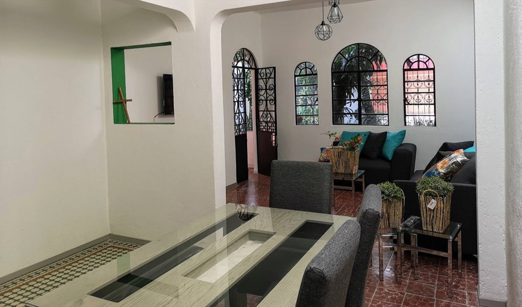 Recién re-modelada, pero respetando su estilo colonial. Cuenta con 6 recámaras (la mayoría con baño propio), 5.5 baños, cocina equipada, un amplio patio y un espectacular roof garden rodeado de hermosos árboles.