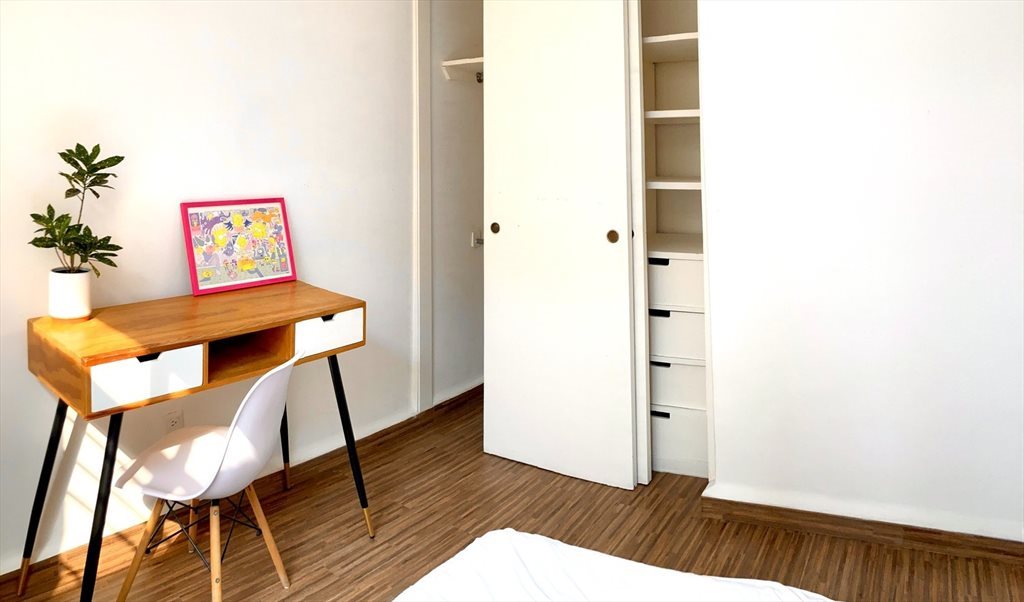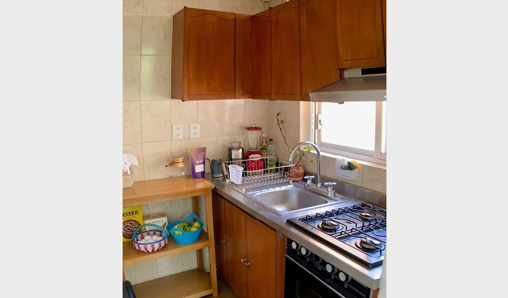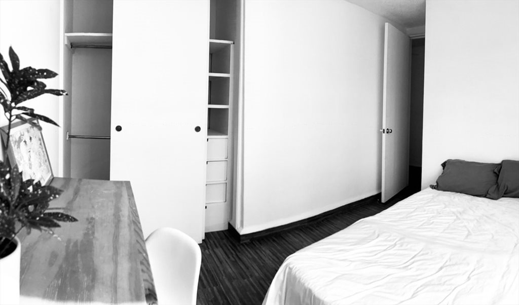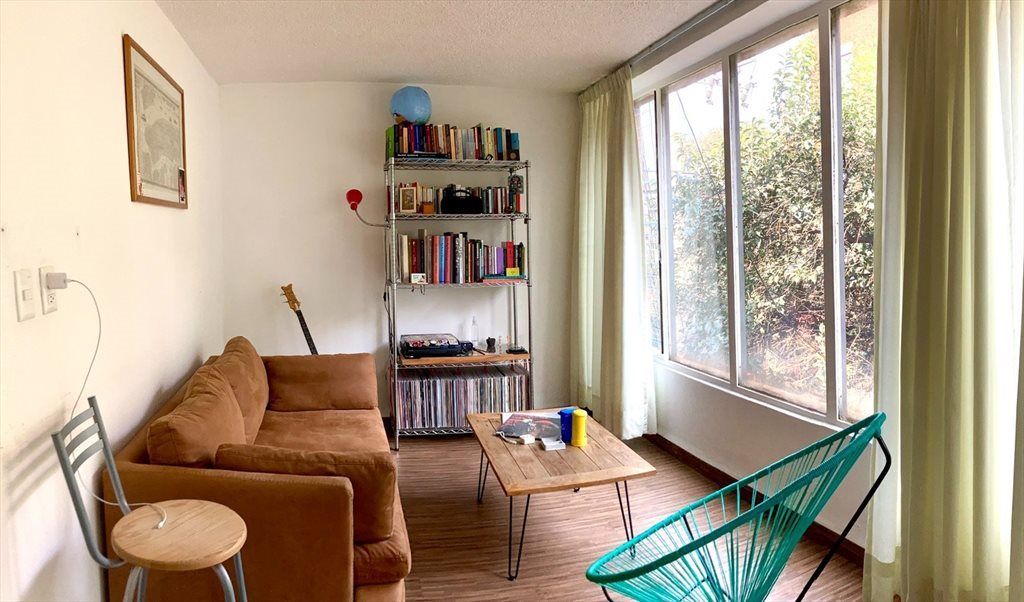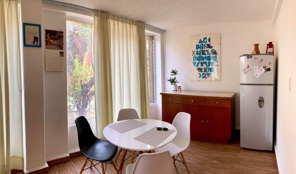 Se renta habitación (amueblada o sin amueblar) en depa compartido con 1 persona. Estancia y baño compartidos, enseres de cocina y lavasecadora. No mascotas (por contrato), pero mucha buena vibra.