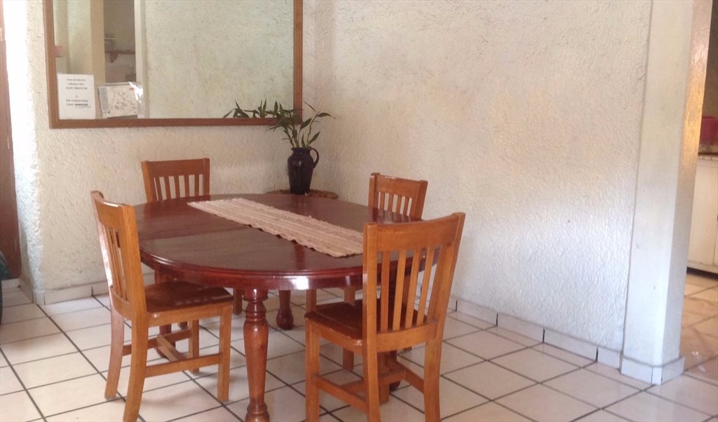 Tiene cama individual, baño privado, muy cómoda, entrada independiente, limpia y segura. Incluye todos los servicios + WiFi. Acceso a cocina, comedor. La foto no muestra, pero la acabo de remodelar