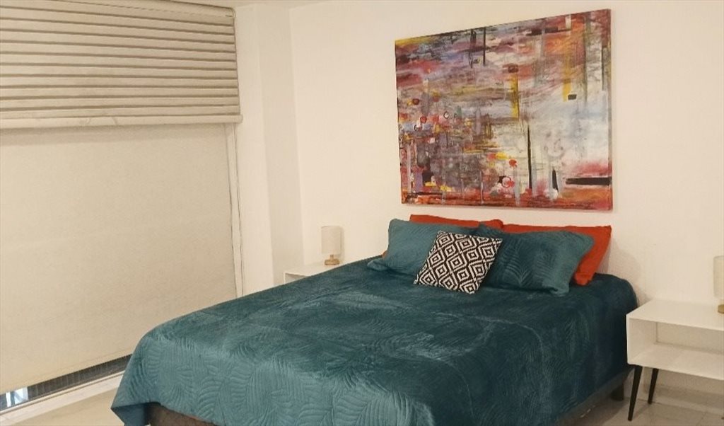 Habitación principal amueblada con baño privado, da al exterior, tiene una ventana amplia, es muy iluminado, cuenta con amplio clóset.