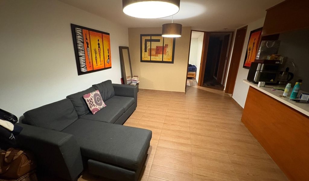 Ofrecemos un cuarto privado con baño propio, y áreas comunes (sala, comedor) así como un cajón de estacionamiento dentro del departamento.