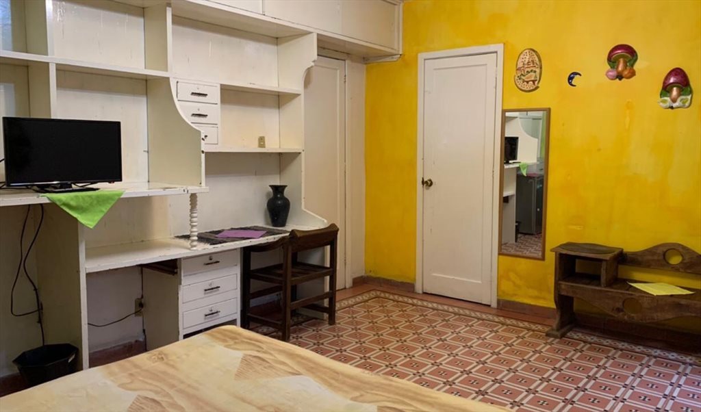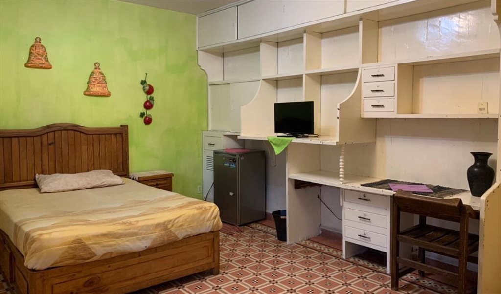 TENGO UNA HABITACION MUY GRANDE, ESTA SUPER BONITA, TIENE TELEVISION,REFRIGERADOR, VESTIDOR, MUY ILUMINADA Y VENTILADA, TIENE UNA TERRAZA TECHADA PRIVADA, USO DE COCINA, Y MICROHONDAS.