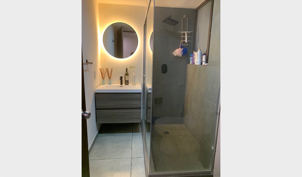 La habitación está dentro de un departamento con 4 recámaras, esta es la única recámara interior, cuenta con ventilación natural, recámara alta matrimonial, disponible desde el 24 de Noviembre.