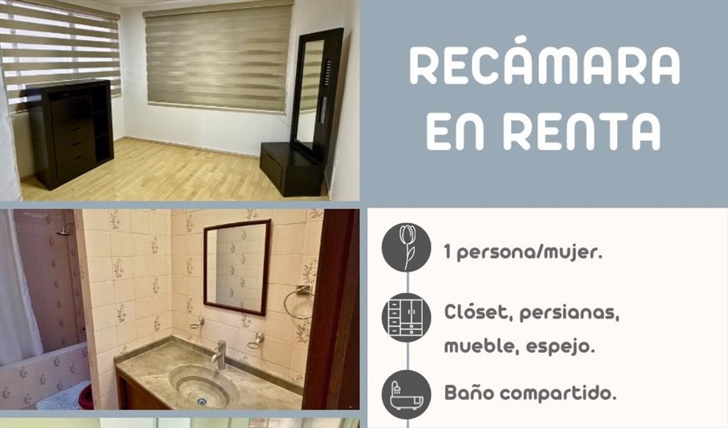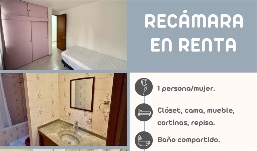Renta mensual por recámara: $5,000 pesos.