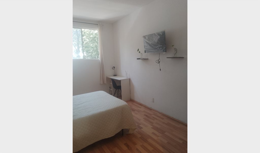 Recámaras muy amplias, iluminadas, clóset amplio, TV, escritorio, ventanas a calle muy tranquila, recién remodeladas, a 7 cuadras de insurgentes Sur, metrobus parque Hundido o Ciudad de los deportes, 4 cuadras de patriotismo. A una cuadra de parque Hundido, 4 de supermercado. El baño se comparte, x lo q sólo para mujeres. No permito visitas. Tengo dos perritos, x lo q si no te gustan, no soy una opción para tí.