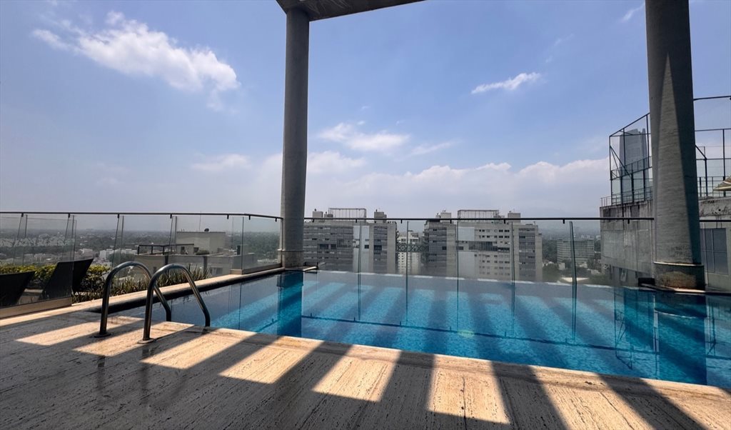 Dos habitaciones, un baño compartido, un cajón de estacionamiento. Uso de las áreas comunes piscinas, boliche, gym, área de trabajo, roof y cine