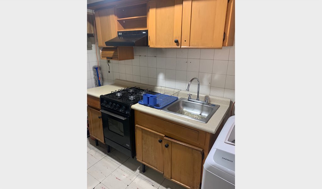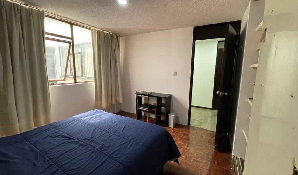Rento habitación para 1 o 2 personas con cama queen size. Escritorio pequeño.Todos los servicios incluidos. Cocina equipada y lavadora. Baño privado.