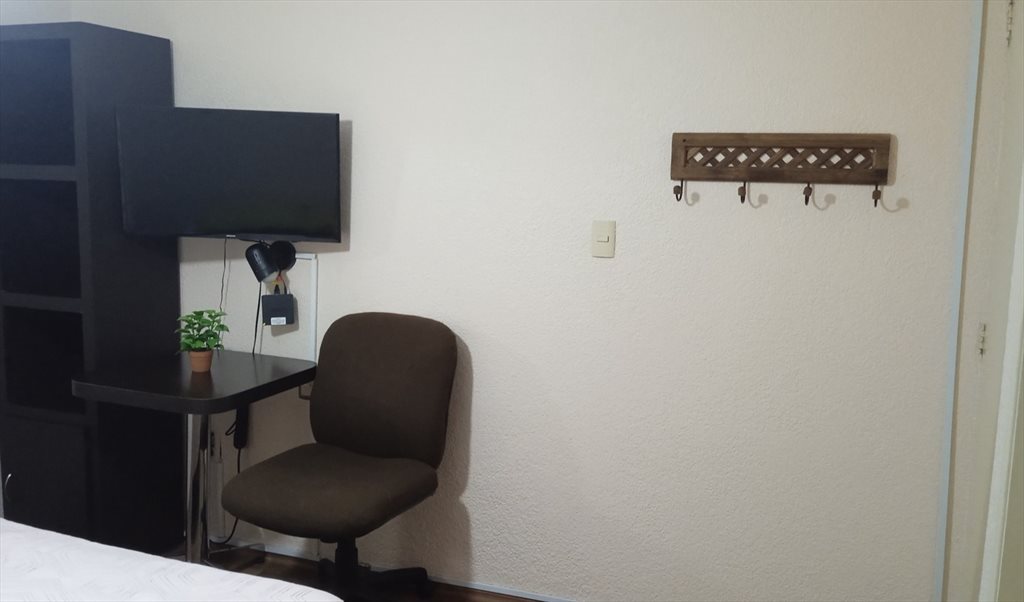 RECÁMARA AMUEBLADA, IMPECABLE, CAMA MATRIMONIAL , CLOSET GRANDE, T.V. SMART, INTERNET, CABLE, BAÑO COMPARTIDO CON OTRA DAMITA, SERVICIOS INCLUÍDOS, LIMPIEZA QUINCENAL.
