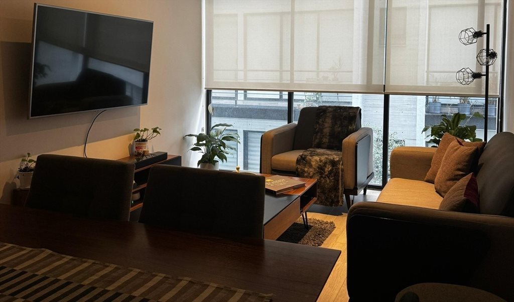 Habitación disponible (amueblada o sin amueblar) con baño propio. El depa está increíble y listo para habitar: sala, comedor, cocina y cuarto de lavado completamente amueblado.