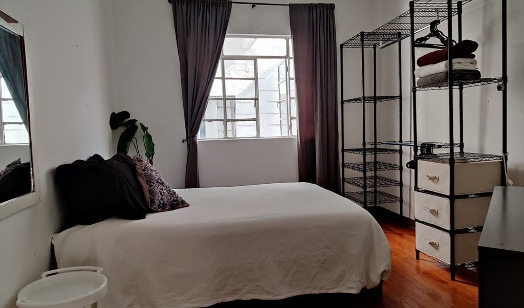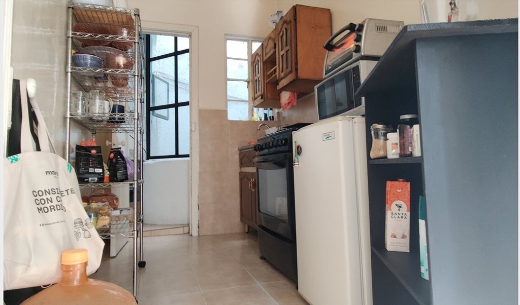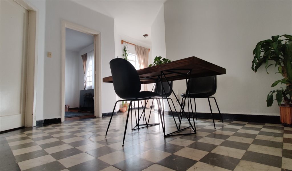 This is a three-bedroom flat, but I'm only willing to share with one person. So, we have an extra room to use as a studio. There's a small kitchen, dining room, living room, and a washing room, but only one bathroom that we must share—that's why I'd really appreciate someone who isn't too messy. The cleaning lady comes once a week, and usually that's enough if we all pitch in to keep it tidy. There's no parking, nor a balcony. We have plenty of windows, but none of them face the main street, so it is quite peaceful most of the time. The building is a bit old but reliable, with high ceilings, located on Amsterdam Avenue, right between Parque México and Parque España.