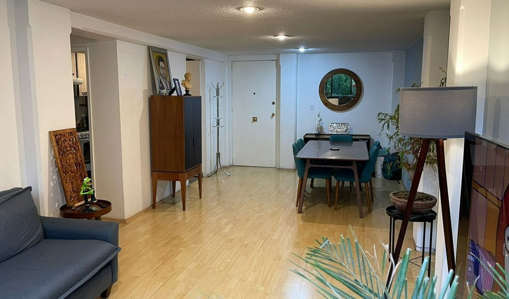 Es un depa de 100 metros cuadrados en un cuarto piso (hay elevador) en Colonia Cuauhtémoc, a una cuadra de Reforma.