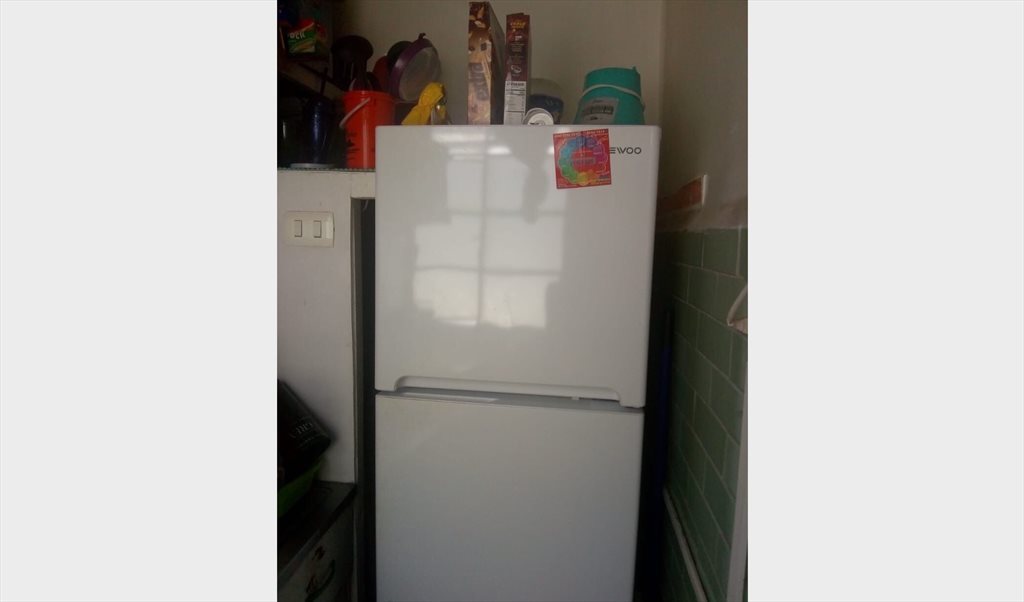La cocina cuenta con refrigerador grande, microondas, licuadora, tarja, parrilla, vajilla, cubiertos, sartenes, etc