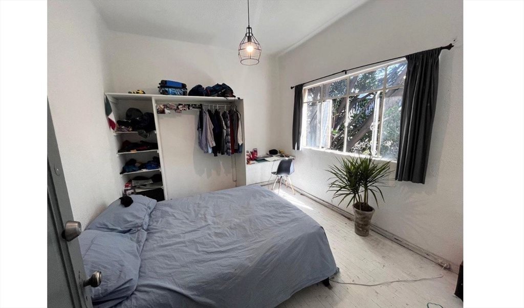 La habitación es amplia, muy luminosa y tiene una ventana grande con vista a una calle tranquila, por lo que se duerme muy bien. Está completamente amueblada, tal como aparece en las fotos: cama grande y cómoda, escritorio con silla, clóset y mucho espacio de almacenamiento.