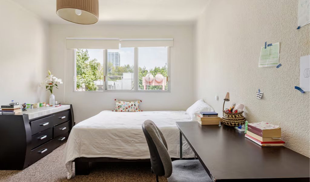 Es un departamento de 3 habitaciones en 2 plantas y seríamos 3 personas en total. EL edificio no cuenta con estacionamientos, pero hay pensiones muy cercanas. El cuarto disponible está en planta inferior, se renta amueblado con cama, escritorio con silla, espejo, ventilador, y closet amplio. Se comparte un baño completo con 1 roomie. Yo tengo mi propio baño y ocupo la planta superior.