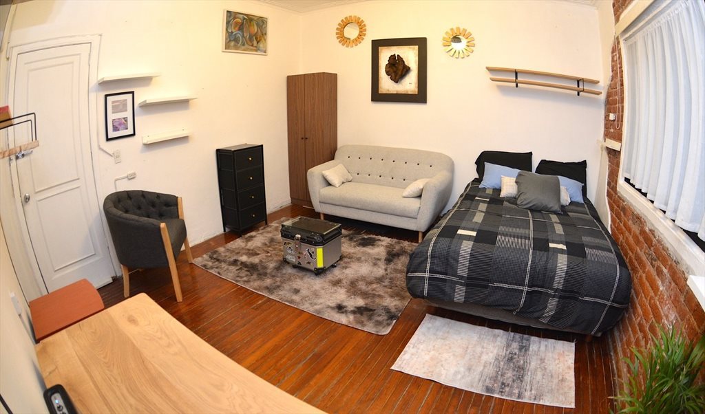 Amueblado como se ve en las fotos, cuenta con su cocineta y su baño privado, mucha iluminación ya cuenta con todos los servicios incluidos como limpieza 2 veces por semana, area de lavado con secadora, internet, luz, gas, agua y mantenimiento general. Se acepta pareja. No mascota. No lugar de estacionamiento.