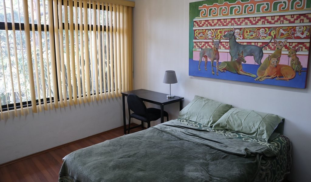 10-minute walk to metro and Metrobús, with Ecobici one minute away. Safe and convenient area near supermarkets, cafés, gyms, and daily services.