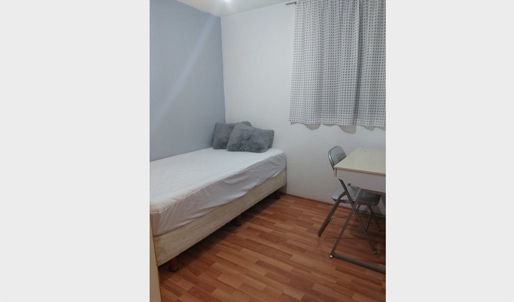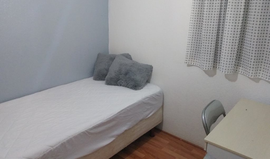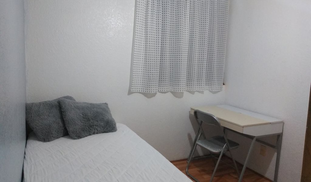 La habitación cuenta con clóset y una cama individual.