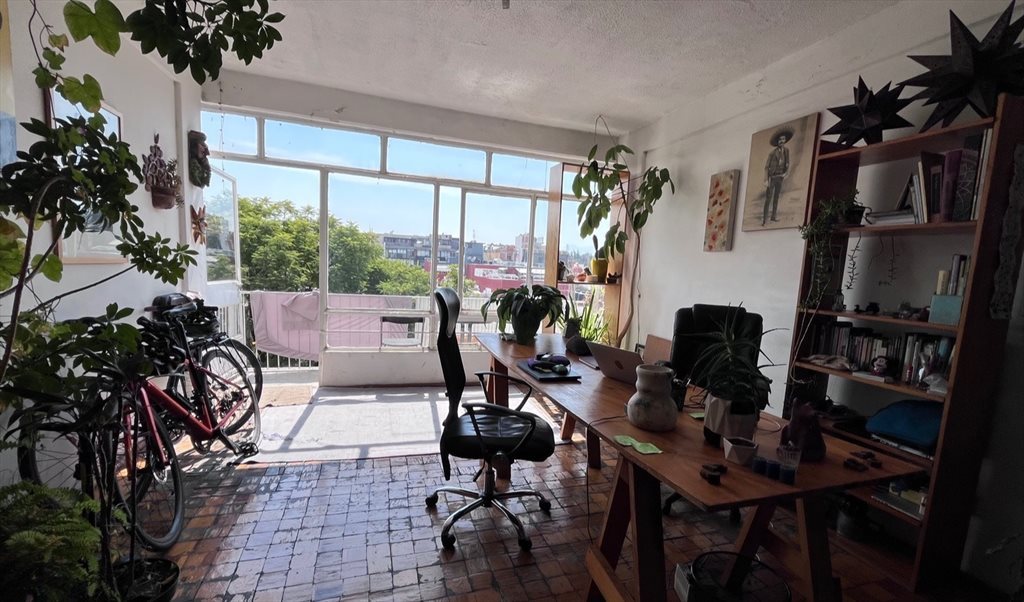 Depa 180m2, balcón vista panorámica, mucha luz y plantas, ambiente relajado y convivencia de respeto, limpieza y orden importante. Habitación amueblada (opcional). Buscamos alguien responsable, que trabaje de preferencia fuera de casa o híbrido, sin mascotas. El barrio es súper bonito, lleno de cafés, parques, restaurantes, transporte de todo tipo, muy céntrico para llegar a cualquier punto de la ciudad.