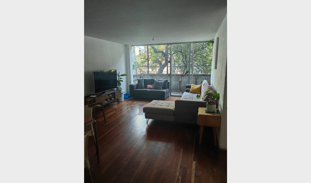 El depa está ubicado en la colonia Roma Sur y cuenta con diversos medios de transporte (metrobús, estación de metro Chilpancingo a 10 minutos caminado y estaciones de ecobici). La áreas comunes están amuebladas (cocina, sala y comedor) y cuenta con lavadora para compartir. Disfruta del hermoso balcón que tiene disponible.