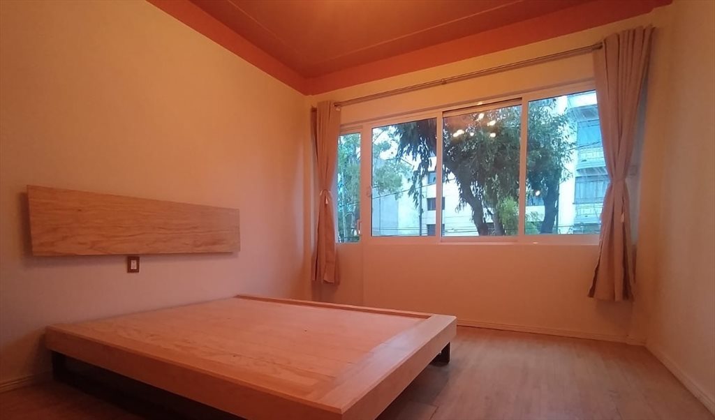 Departamento con Techos altos, espacios amueblados. La recámara cuenta con cama matrimonial, cabecera, pequeña cómoda, 2 burós, clóset amplio, balcón privado. Compartirás los espacios con 2 jóvenes roomies Profesionistas (Hombre-Mujer) en un ambiente ordenado, tranquilo, con sana convivencia. Tenemos una mascota pequeñita, muy disciplinada y limpia. Si deseas conocer el Depa y la habitación, mándanos mensaje o Whatssap.