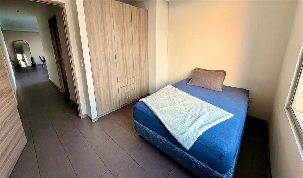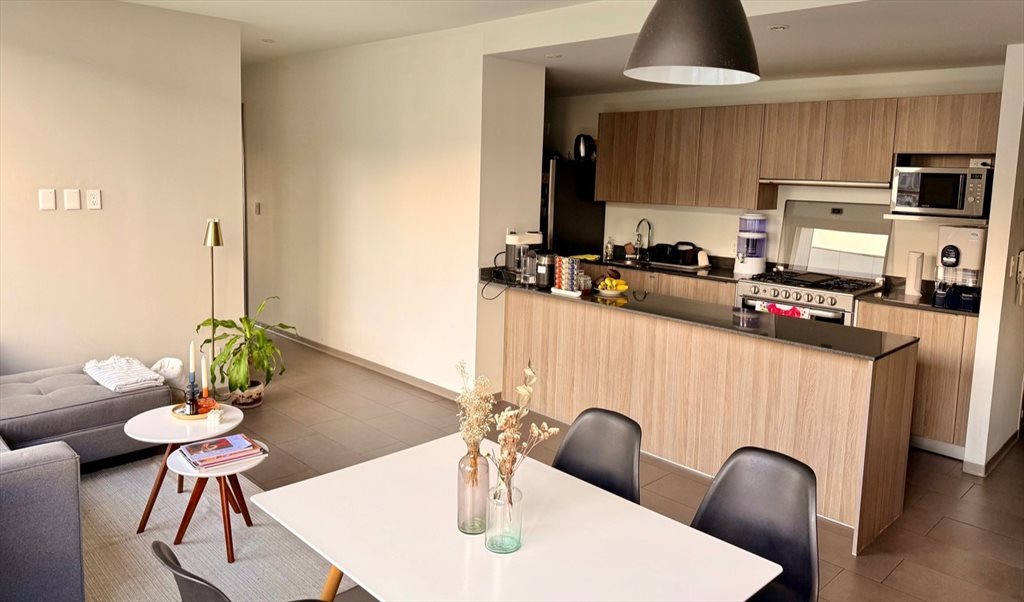 Al departamento le entra mucha luz natural y está amueblado; tu habitación incluye un clóset grande y cama matrimonial. Tenemos 3 habitaciones y 3 baños, entonces cada roomie usa su propio baño, salvo por la ducha / regadera, que la compartirás con la otra roomie. La cocina incluye refri, congelador, estufa de 6 quemadores con horno, y también un microondas. Tenemos filtro de agua, así que olvídate de los garrafones. Tenemos lavadora y secadora dentro del departamento.