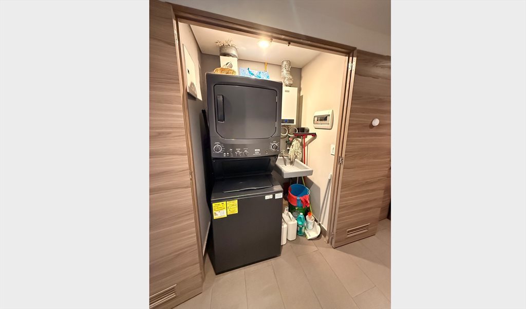 The apartment has a lot of natural light and is furnished; your room includes a big closet and a double bed. We have 3 bedrooms and 3 bathrooms, so each roomie uses his/her own bathroom, except for the shower, which you will share with the other roomie. The kitchen includes a refrigerator, freezer, 6 burner stove with oven, and also a microwave. We have a water filter, so you can forget about water bottles. We have a washer and dryer inside the apartment.