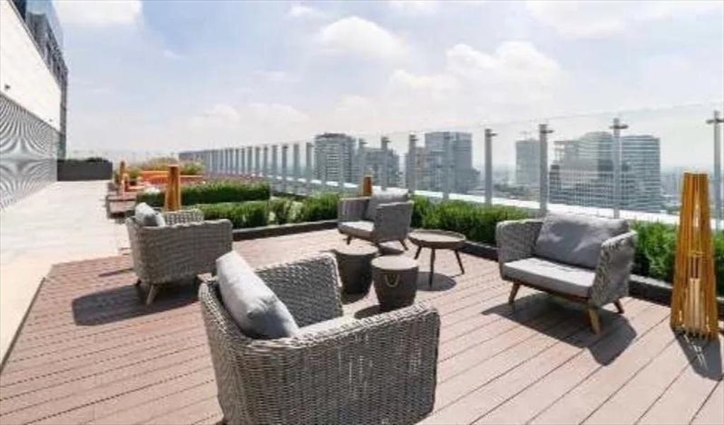 The building has a well equipped gym, event room and a cool roof garden where you can have meetings. There are 4 elevators and fingerprint access control, plus 24/7 receptionists, so it's super secure. There is a parking space available for you. There is an Oxxo and 7-Eleven, both half a block away, plus a Toks restaurant right at the entrance of the building. The Walmart Express is two blocks away. There is a Starbucks one block away.