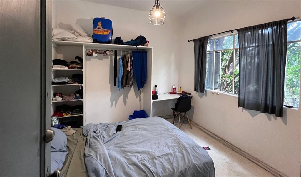 La habitación es amplia, muy luminosa y tiene una ventana grande con vista a una calle tranquila, por lo que se duerme muy bien. Está completamente amueblada, tal como aparece en las fotos: cama grande y cómoda, escritorio con silla, clóset y mucho espacio de almacenamiento.