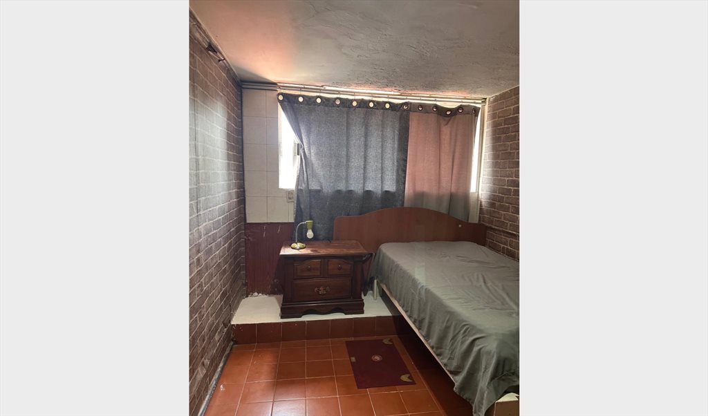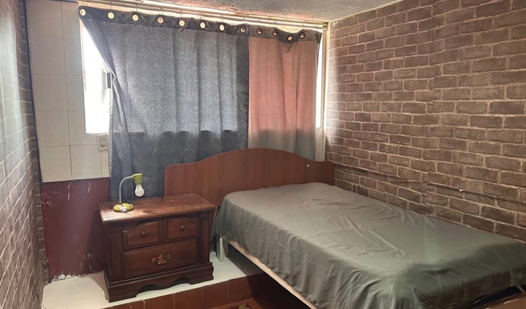 La habitación cuenta con cama con colchón, buró, ventana a la calle, clóset