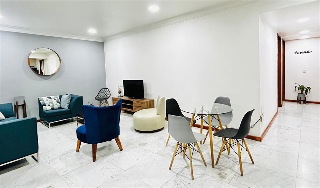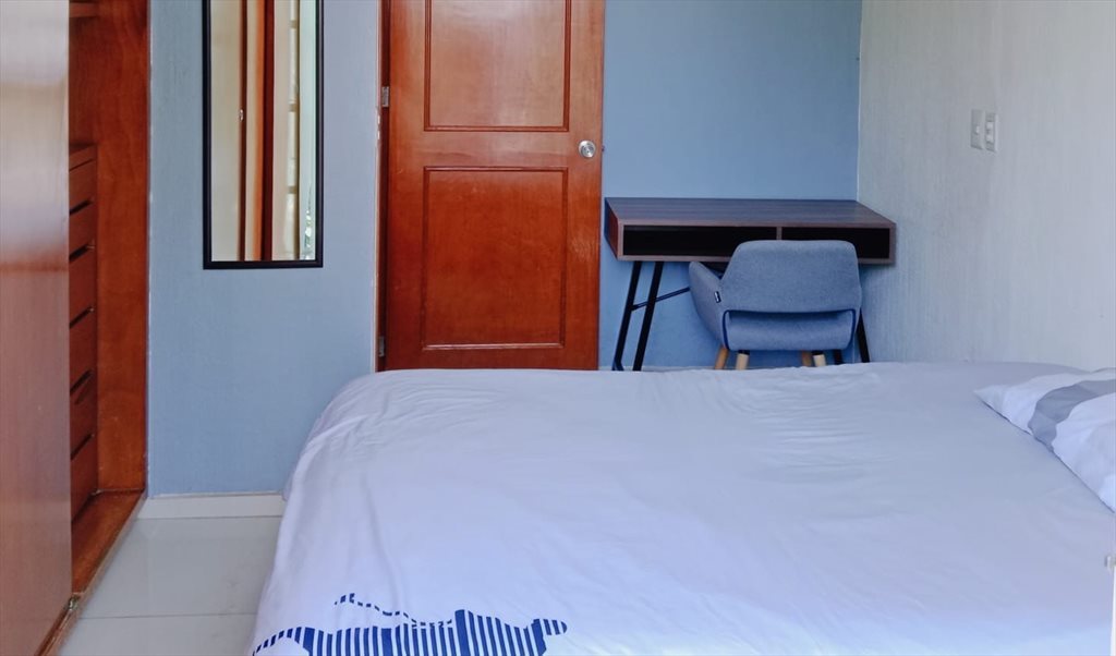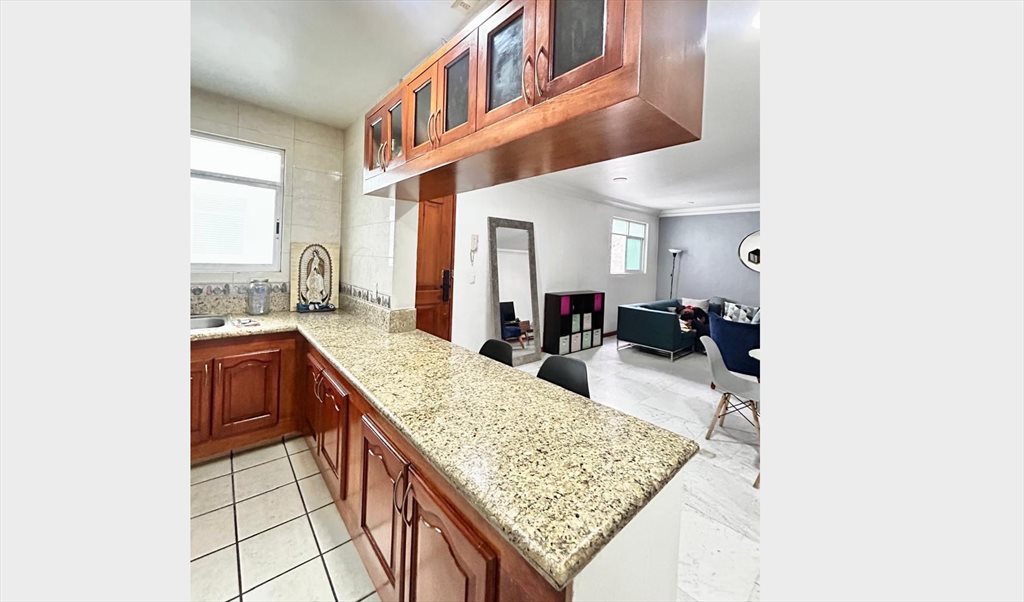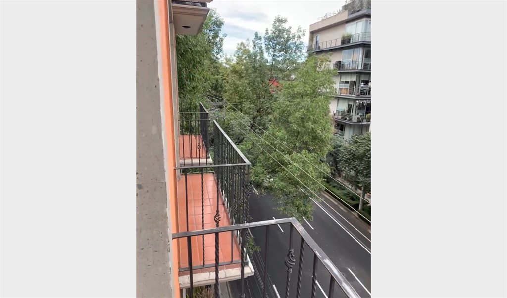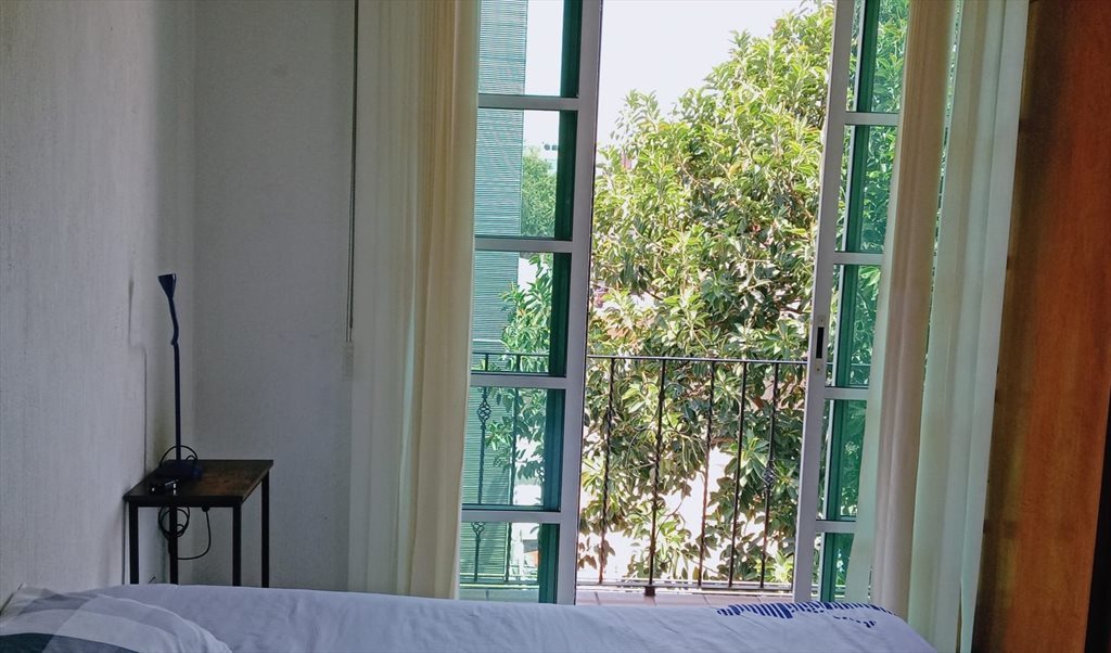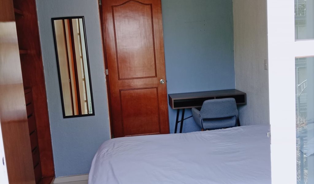Habitación mediana disponible en el corazón de la colonia del Valle. Cuenta con balcon propio a exterior, cama de matrimonio, escritorio, mesa de noche, armario empotrado grande. En la sala hay tv, y hay espacio suficiente, un pequeño comedor. La cocina esta totalmente equipada, y hay cuarto de lavandería; Baño muy grande que se comparte solo con una persona. El estacionamiento y el resto de servicios ya están incluidos en el alquiler.