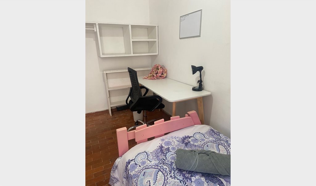 Habitación con cama individual y amplio escritorio, con baño. Todos los servicios incluidos. Cocina y áreas sociales compartidas, sala, comedor, patio y jardín, tiene estacionamiento. Muy cerca de la Universidad ESCENA.