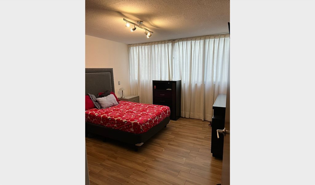 Se renta cuarto en $9,400 pesos mensuales en departamento remodelado con 165 m2 en la colonia Del Valle Norte. El departamento esta amueblado y tiene todo lo necesario como refrigerador, centro de lavado, sala, antecomedor, sala de TV, micro ondas, vajilla, cubiertos, vasos, etc. El edificio es muy tranquilo y casi no hay ruido.