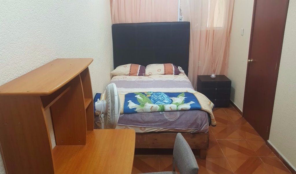 La habitacion privada cuenta con 2 camas inviduales, o 1 cama matrimonial, ropa de cama, closet, escritorio, silla , ventana a la calle y areas comunes, comedor, cocina equipada, baño, re modelado, clóset, lavadora y área de tendido de ropa y lavaderos a una cuadra de Plaza Luis Cabrera con jardines y fuente hermosa, con vista a la calle, pensión para auto cerca del depto, ver fotos. Mas Servicios. Es piso 4 y no tiene elevador. Son 4 habitaciones y solo esta esta disponible.