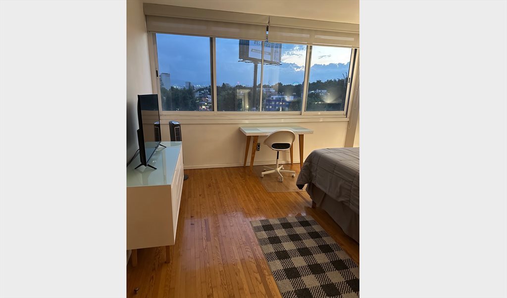 Busco persona profesional, responsable y educada, Home office en la habitación ,Se tiene un ambiente agradable y de respeto. Visitas esporádicas . Se tiene un perito chiquito (hembra ). La habitación cuenta con cama KING SIZE, clóset amplio y diverso mobiliario. Se comparte estufa y lavadora . Se tiene un Area de tendido para secar la ropa. El departamento cuenta con elevador. Los servicios que se incluyen son internet, gas, agua y luz. El servicio de Limpeza se divide entre los que habitamos en el mismo.El departamento se encuentra cerca del Metro Chapultepec y del Parque España; la zona es segura. No se puede fumar dentro de la casa, sin embargo, existe un balcón donde se puede hacerlo. Se requiere un depósito de un mes, referencias personales, constancia de trabajo y copia de identificación. Estancia mínima de 6 meses, El contrato puede renovarse.