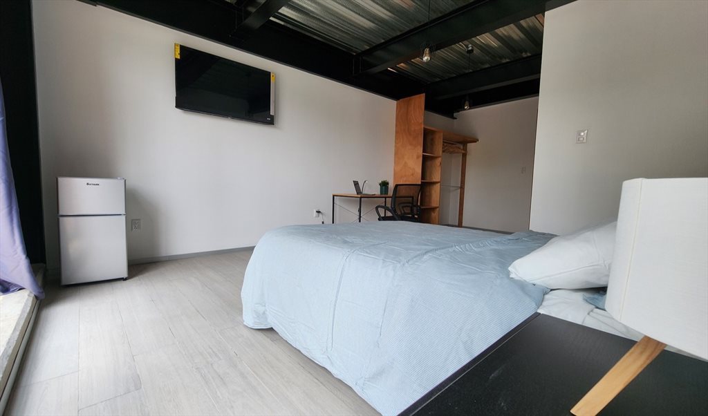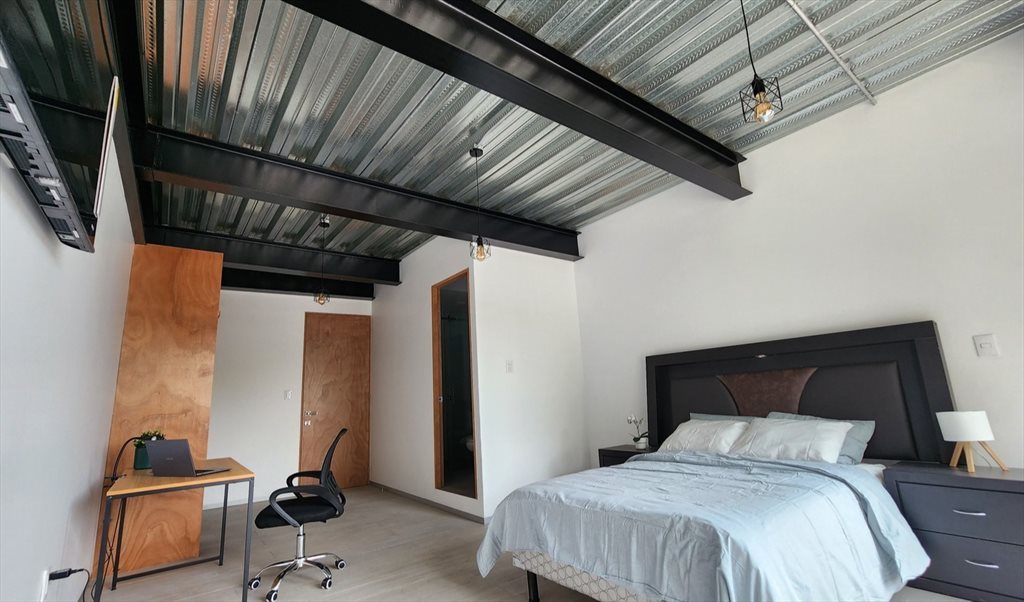 Las habitaciones estan en concepto de coliving, la sala, comedor, cocina, área de lavado y roof son áreas comunes y todo esta equipado para que lo puedan usar, todas se entregan con cama matrimonial, cortinas, closet y buro. Todas las habitaciones tienen baño privado y los costos van a partir de los 10,000 hasta los 12,000 dependiendo del tamaño. Hay opción de tener estacionamiento por 1,500 pesos sujeto a disponibilidad