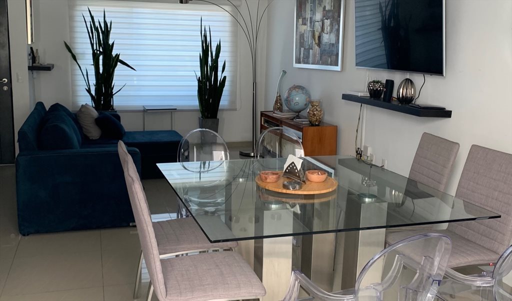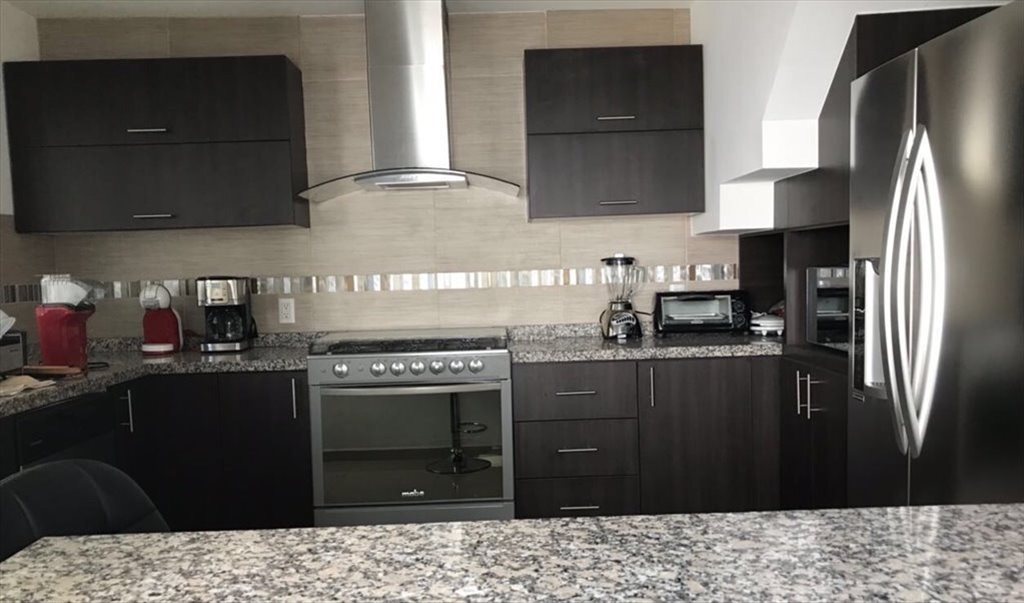 La casa se encuentra completamente amueblada: cocina, comedor, sala, centro de lavado, tv, patio, 24hrs de seguridad