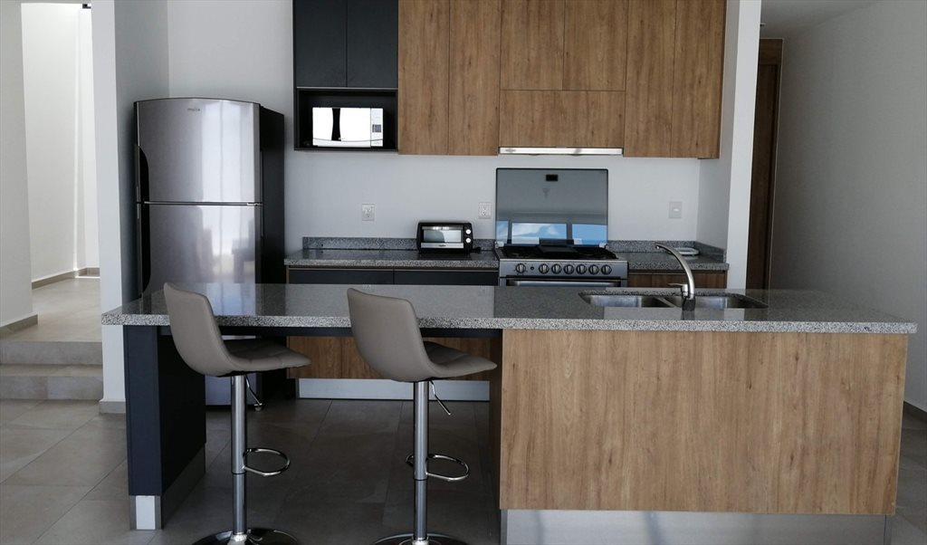 Acabados de alta calidad en toda la casa. Tenemos una zona especial para hacer home office y/o tareas (tiene un amplio escritorio de tipo gerencial). Cocina integral equipada con refrigerador, microondas, estufa y horno. Jardín trasero con asador. Casa muy amplia. También se tiene comedor para 6p, sala con sofá y tv, barra desayunadora con sillas tipo bar y lavadora en el cuarto de servicio. Cuenta con cajones de estacionamiento en cochera techada.