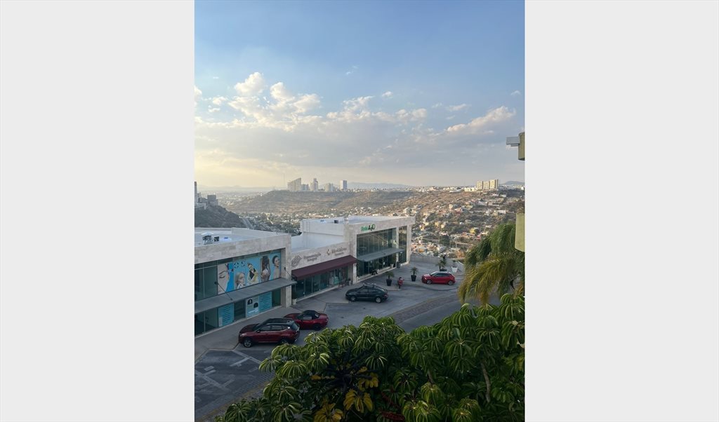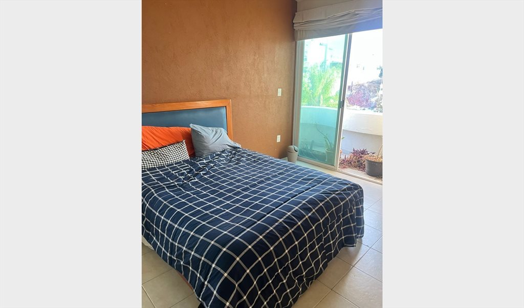 Se renta habitación principal en departamento ubicado en Milenio, cuanta con su propio baño y balcón privado. El departamento está amueblado y cuenta con televisión, internet, utensilios de cocina y lavadora, además de un balcón con vista. El edificio se encuentra sobre la calle principal y ofrece área verde, asador y alberca. La habitación incluye un cajón de estacionamiento techado.