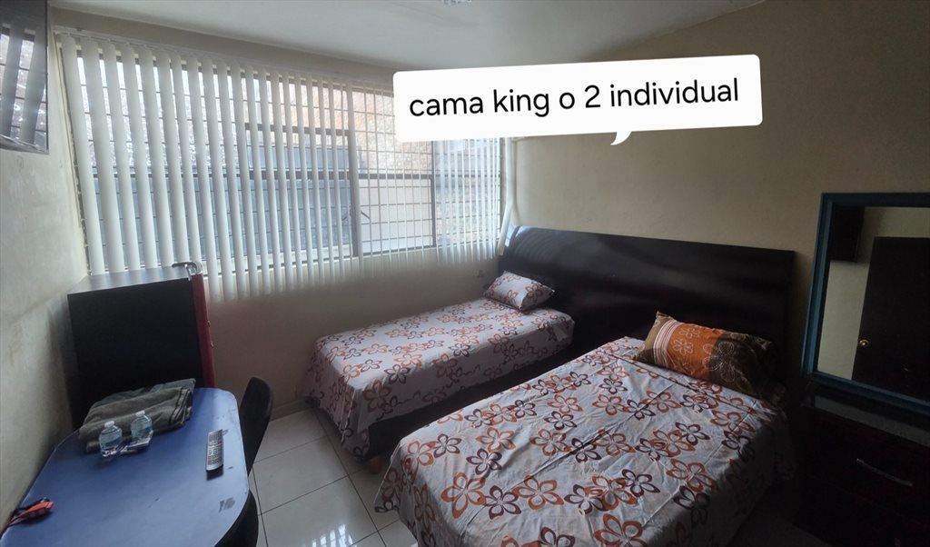 Puede ser Cama king o 2 camas individuales en caso que lo necesiten para compartir.